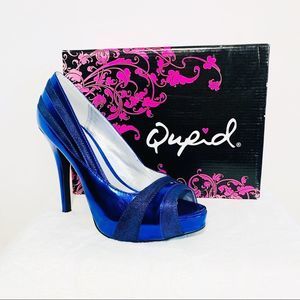 🍀 Mix & Match 4/$60 🍀 Qupid metallic Blue Peep toe pumps size 7.5