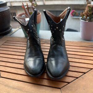 Mix Mooz Black Leather Western Studded Ankle Boots Size 8.5