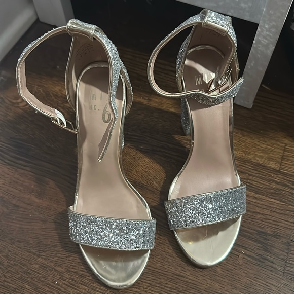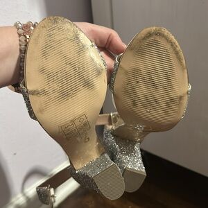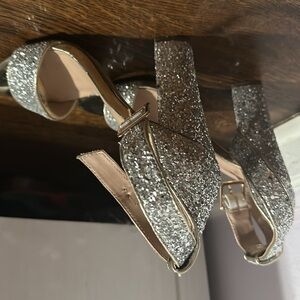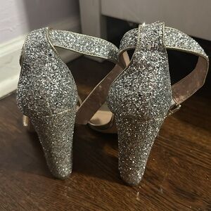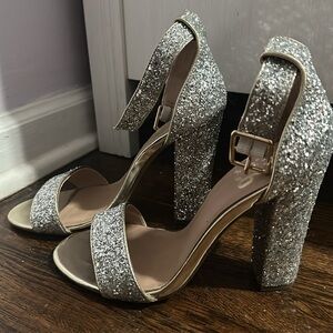 Silver Sequin Heels Worn once Beautiful shoe and looks great on My shoe size change is your gain! Pet friendly home Offers welcome