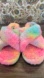 Mix No. 6 Amatta Tie Dye Platform Slippers Faux Fur Strappy Slip On Rainbow 9