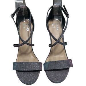 Turn heads at your next event with these stunning Mix No. 6 glitter strappy stiletto heels! Featuring a shimmering black design with an elegant open-toe and adjustable ankle strap, these heels are perfect for formal occasions, weddings, or a night out.