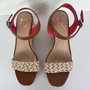 Mix No. 6 Cammie Sandals Size 7.5 M Tan Chevron Multicolor Wedge Platform Heels