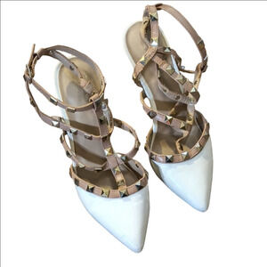 Chic pointed-toe heels with studded straps. Perfect for stylish outings.
