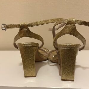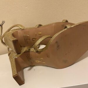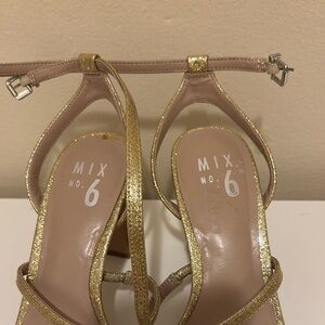 Step into elegance with these gold heels from Mix No. 6, featuring a chic strappy design and a comfortable heel height. Perfect for formal occasions, these sandals offer a sophisticated touch to any outfit.