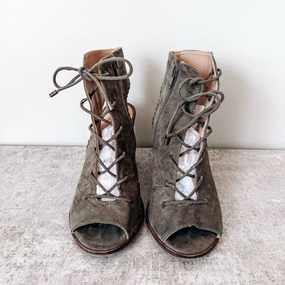 Mix No. 6 Green Lace Up Peep Toe Block Heels Size 8.5