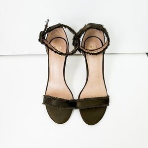 Mix No. 6 Green Satin Fringe Open Toed Heels Size 8.5