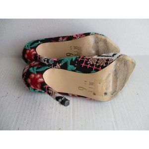 Mix No.6 Embroidered Pumps 'Dignity' Vibrant Floral Design Pointed Toes. Size 7. Covered 4" Stiletto heels. All measurements are approximate. Minor thread fraying at lower heel tip. Please see photos for more details. (S24-05) 0324