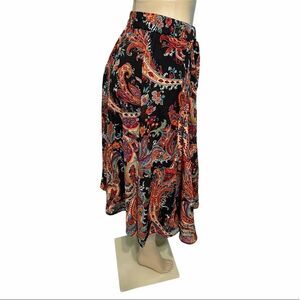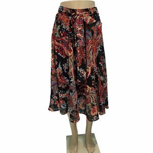 Mix Nouveau Paisley Peasant Midi Skirt Bow Waist Elastic Boho Black Medium