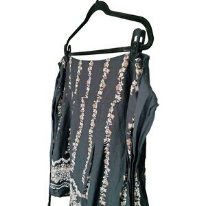 floral skirt, boho skirt, black white skirt, cotton skirt, fully lined skirt, side zipper skirt, tie waist skirt, 2X skirt, bohemian clothing, women's skirt, Mix Nouveau, casual skirt, patterned skirt