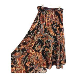 Mix Nouveau XL Black Russian Paisley Maxi Boho Festival Pull-On Skirt Lined