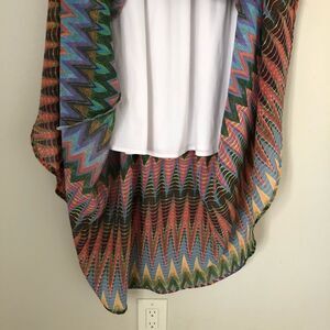Mix Nouveau Multi Color Boho Style Chevron Print Elastic Waist A-Line Maxi Skirt. Size Small. Tie front with tassels. Half lined. Beautiful colors in blue, green, pink, yellow, purple. Excellent condition!