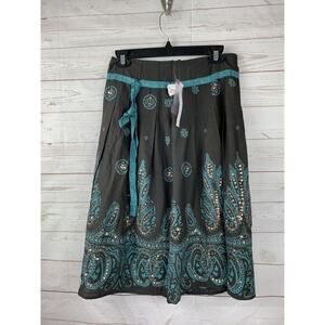 Mix Noveau Skirt Womens size 2 Sequin Embellished Flare Boho Skirt Brown/teal