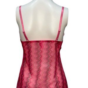 Mix pink pixel design loose flowy mesh slip mini dress with lace v neckline and adjustable spaghetti straps