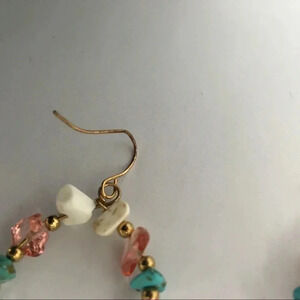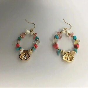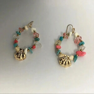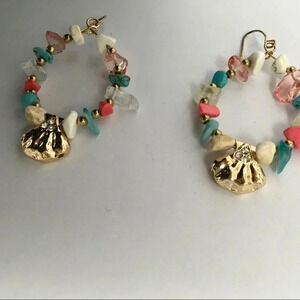 Mix Stone Rock Shell Pendant Hoop Earrings. The shell has tiny little rhinestones in it. There is a little wear on the hook or post part. See pics for conditions. No Modeling or trades. P38