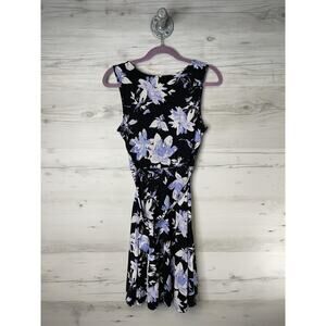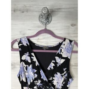 Mix by 41 Hawthorn Dress Womens Medium Black Purple Floral Wrap Sleeveless Lined