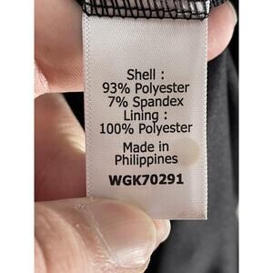 Materials: Shell 93% Polyester, 7% Spandex; Lining 100% Polyester