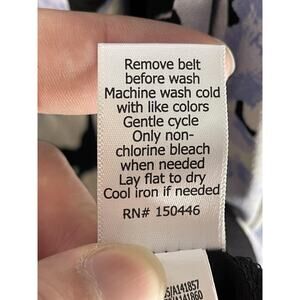 Care notes on tag: Remove belt before wash; machine wash cold; lay flat to dry; cool iron if needed