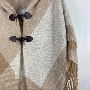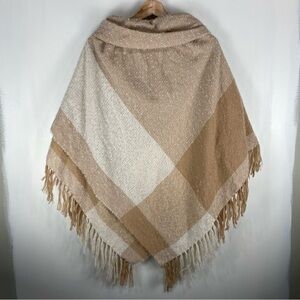 MixIt Let's Snuggle Toggle Front Tassel Fringe Trim Poncho Cinnamon Beige OS NWT