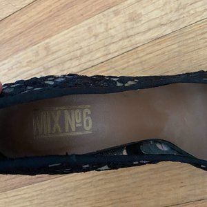 Lightly worn MixNo6 Black Peep Toe Heels with lace detailing. US women's 8/8.5