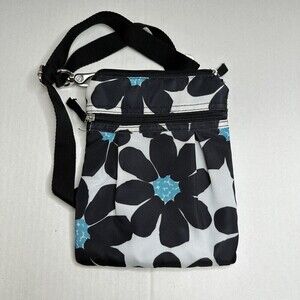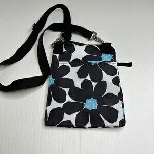 Mixed Bag Designs Black WhiteCrossbody Bag w/ Silver Colored Hardware.