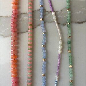 Mixed Bead Necklace - Pink and Green 14 +2" L