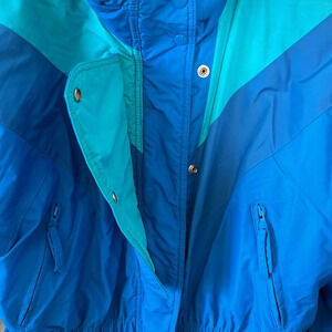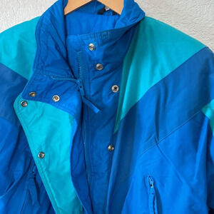 Mixed Blues Women’s Medium Ski Jacket Blue Green Padded Warm Zipper Pockets