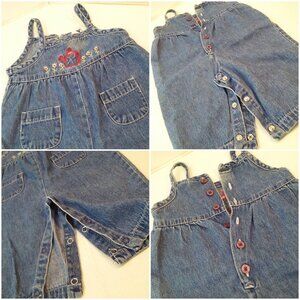 -- Cherokee denim overalls 1-pc embroidered snaps 3-6mos