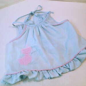 -- Robyn Sue Ruffled Duck Bib blue pink 6m-9m