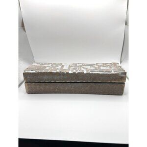The Mixed Font Letters Alphabet Box Trinket Box is a decorative collectible perfect for storing small trinkets or jewelry. Featuring a rectangular shape and adorned with letters in various fonts, this trinket box adds a touch of personality and style to any space. Ideal for those who appreciate lettering and enjoy collecting unique items, this box is both functional and visually appealing. Perfect for organizing small treasures and displaying on a shelf or desk. Measures 9x3x2.5 inches. In excellent condition.