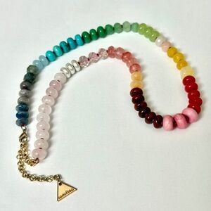 Pre.-Owned Mixed Glass and Semi-Precious Rondelle Knotted Necklace