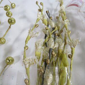 Mixed Gold Floral Stem Glitter Berries Floral Picks