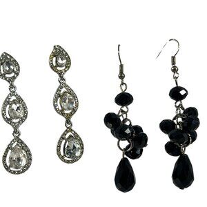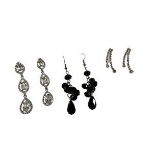 Mixed Lot 11 Earrings Dangle Hoops Beaded Rhinestones Silver Tone