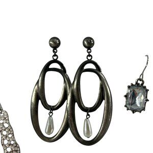 Mixed Lot 12 Earrings Dangle Hoops Beaded Silver Tone Faux Pearl Studs Hearts