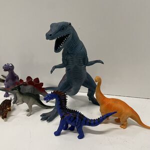 Explore the prehistoric world with this vibrant mixed lot of 12 dinosaur action figures. Each meticulously designed piece, ranging from a fierce Tyrannosaurus Rex to the mighty Brontosaurus and Triceratops, brings the Jurassic era to life. The multicolored plastic figures, standing at 2-4 inches tall, are perfect for imaginative play or display.