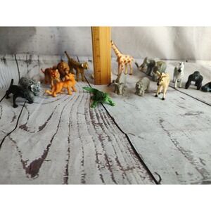 Mixed Lot of 16 Plastic Jungle Animals Toy Figures Zoo Safari Monkey Elephant