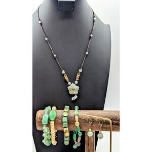 Mixed Lot of Green Stone Theme Jewelry 1 Necklace 4 Bracelets 1 Pr Earrings