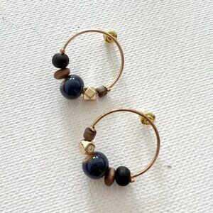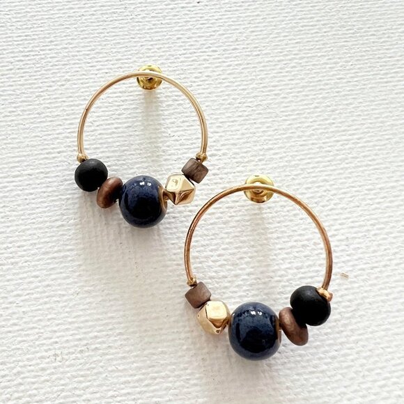 Mixed Material Beaded Hoop Post Earrings