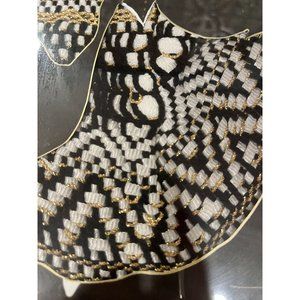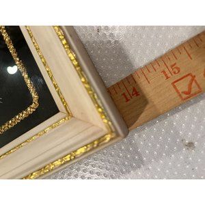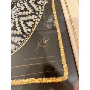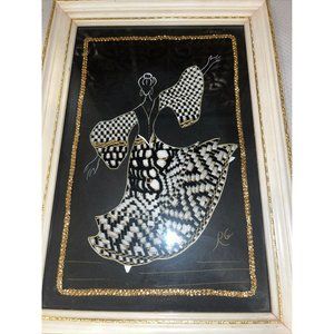 Mixed Media Art Framed Picture RG Creations. Pictures don't do this justice! I wish i could have found more information on this artist. Picture is cut into the black medium and then trimmed with white, gold, and silver paint. Hands, foot, bodice, and head are painted on. The dress and sleeves are fabric that is placed in the voids that were cut from the black medium. It is trimmed all around with a beautiful gold cord and the framed in a white and gold frame. Signed my artist RG. Gorgeous!