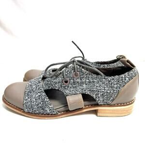 Mixed Media Tweed Lace Up Leather Loafers Shoes Size 6