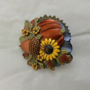 Mixed Metal 3-D Autumn Theme Brooch