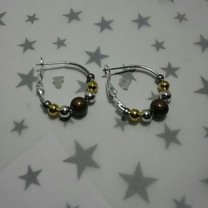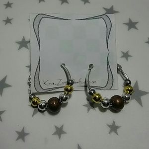 20mm Silver tone hoops with grey, gold, bronze, and silver multi sized metal ball beads.