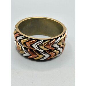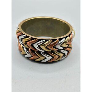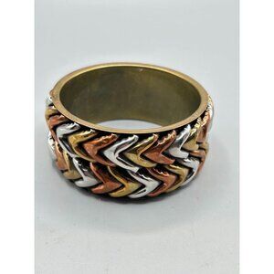 Mixed Metal Brass Copper Silver Tone Chevron Design Chunky Wide Bangle Bracelet