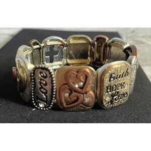 Up for sale is this Mixed Metal Spiritual Faith Hope Love Hearts Christian Stretch Bracelet 8".