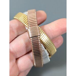 Mixed Metal Style Interlocking Triple Stretch Bracelet 7" Retro