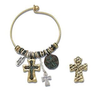 Mixed Metal The Lords Prayer Cross Charm Bracelet