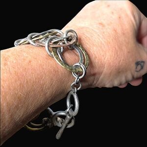 Mixed Metals Brass, Silver, Copper Ring Toggle Clasp Bracelet size L