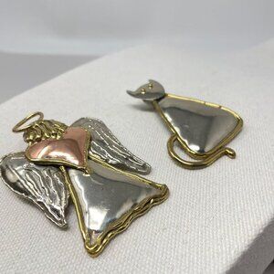 Mixed Metals Brooch Set of 2 Angel Cat Abstract Artsy Pendant Hook