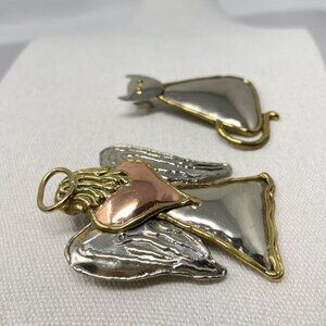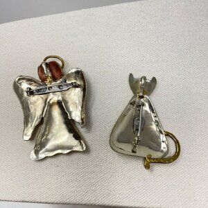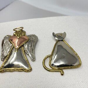Mixed Metals Brooch Set of 2 Angel Cat Abstract Artsy Pendant Hook