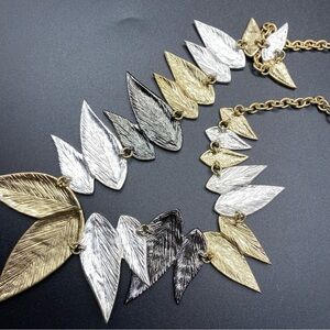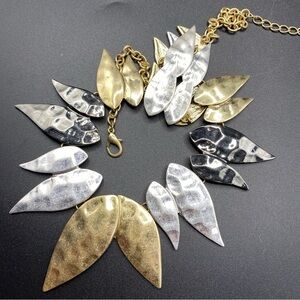 Mixed Metals Textured Teardrop Shaped Statement Necklace. Measures 17"+ 3" extender chain. Very Good condition and appears only gently worn, if at all. #37
