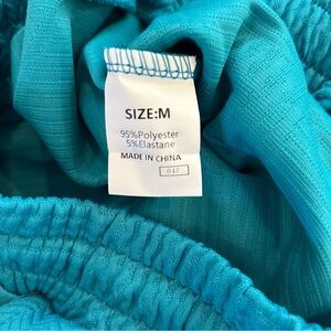 Stylish teal shorts set perfect for casual outings. Features a comfortable fit and trendy design. Stylish teal textured top and shorts set. Features a unique pattern and comfortable fit.
